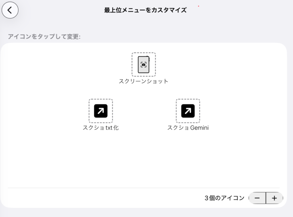 これで電源ボタン3連打で素早くタッチボタンを呼び出しスクショ→貼り付けが行えます。